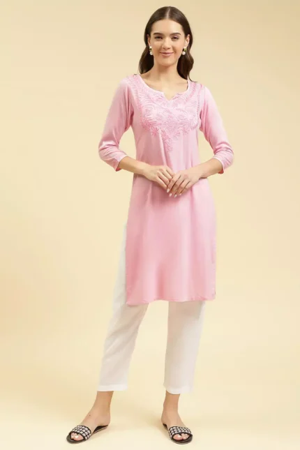 Look ethereal in this Aari work Kurti, freshly crafted in the lightness and comfy feel of cotton.