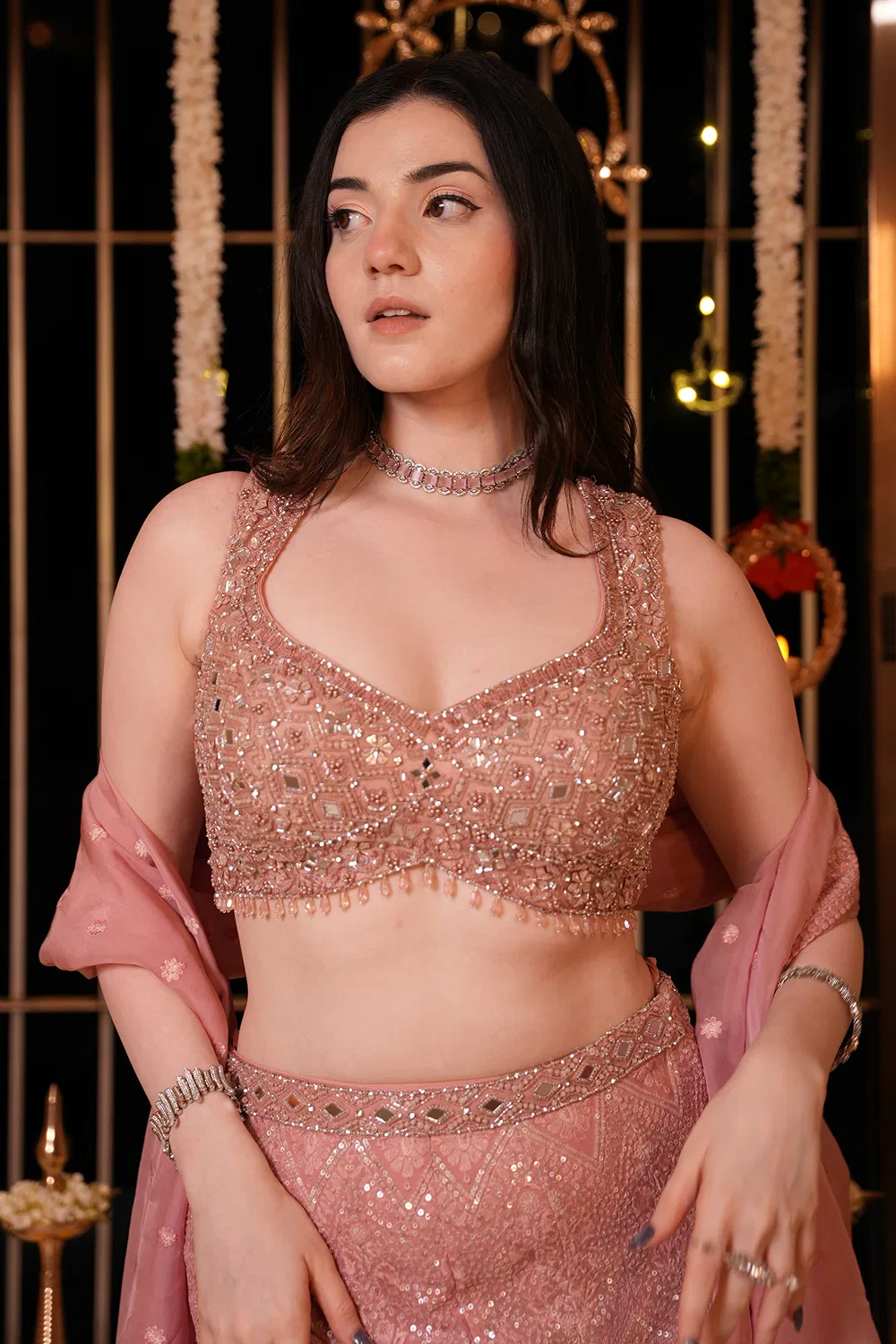 Elegantly crafted with intricate schiffli embroidery, this lightweight palazzo offers a perfect blend of comfort and style. The silhouette is designed for effortless movement, along with two side pockets, making it a versatile addition to both casual and formal wardrobes. Ideal for adding a touch of traditional charm with modern flair.